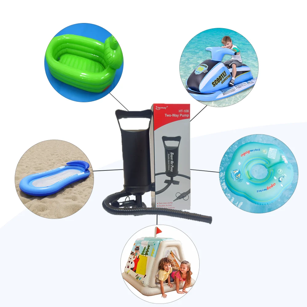 This manual hand pump is suitable for inflating and deflating a variety of inflatable products, including: